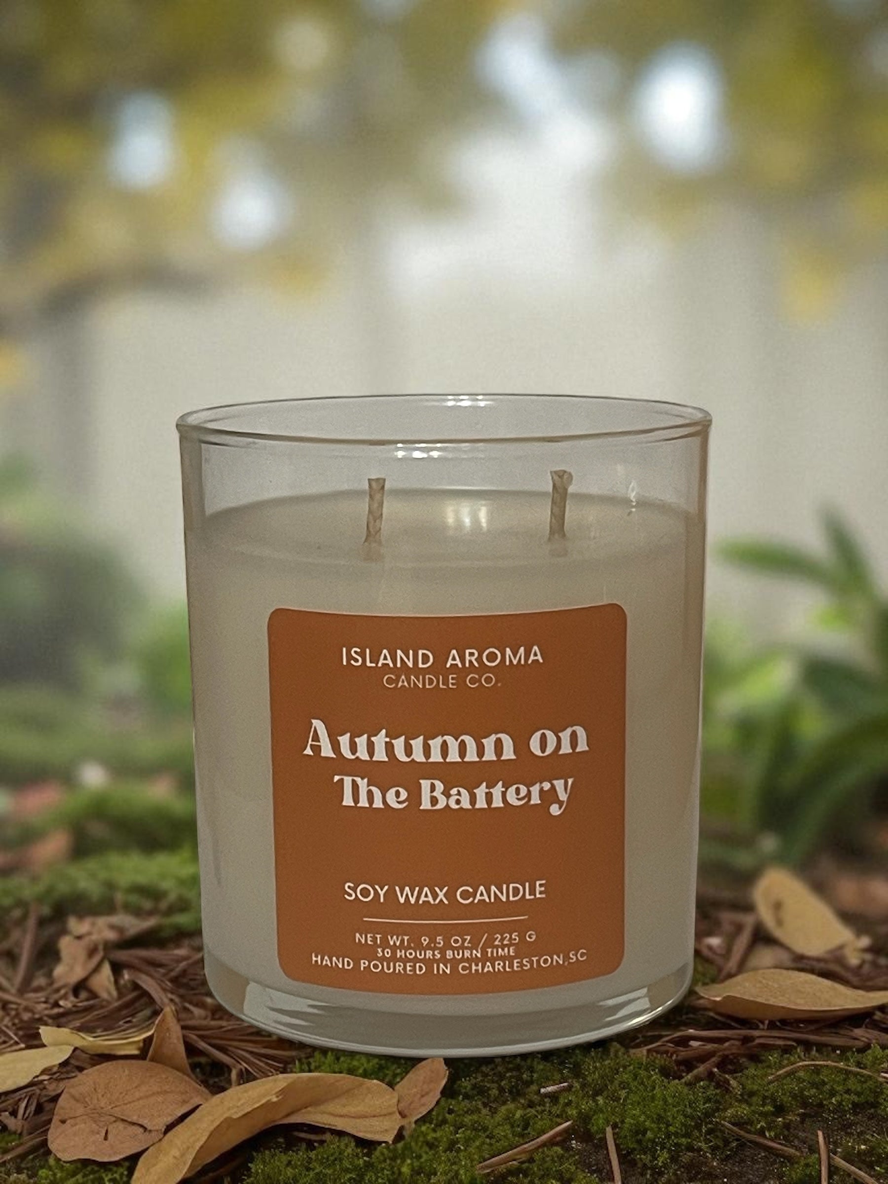 Inspired by Lowcountry sunsets and porch-lit evenings, this scent blends warm amber, dried citrus peel, and aged wood. It’s a tribute to Southern autumns—where the glow lingers long after the sun sets, and every flicker feels like home.